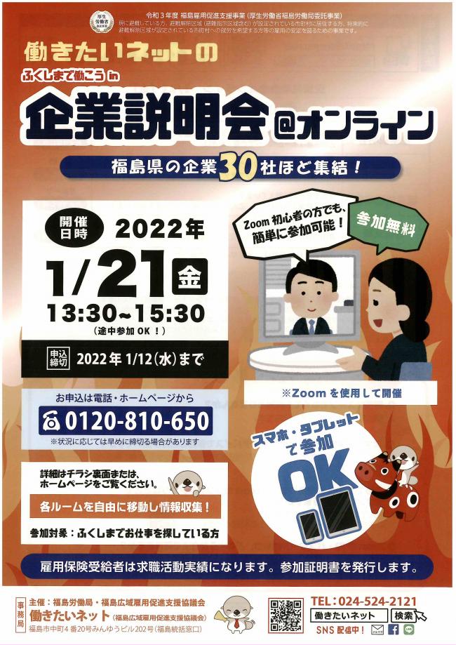 「ふくしまで働こう! 企業説明会」開催のお知らせ